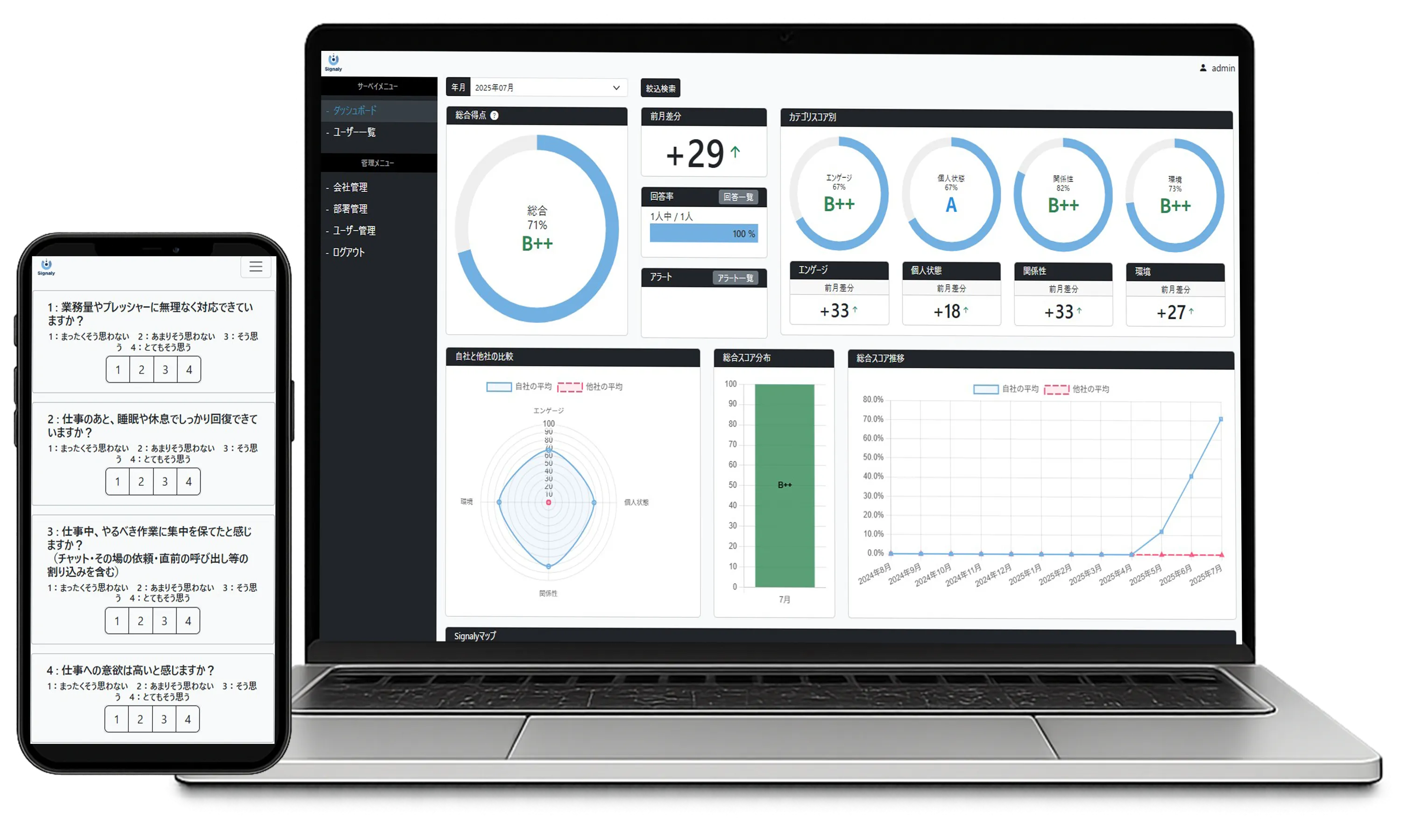離職やパフォーマンス低下の「兆し」を、短時間・定点で検知。